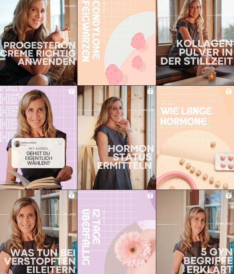 Der Schnitt, das Design sowie das Content-Posting werden hier übernommen. Mithilfe eines strukturierten Contentplans wird das vorhandene Rohmaterial bearbeitet und accountübergreifend gepostet.Etiketten – Minz Prinz
